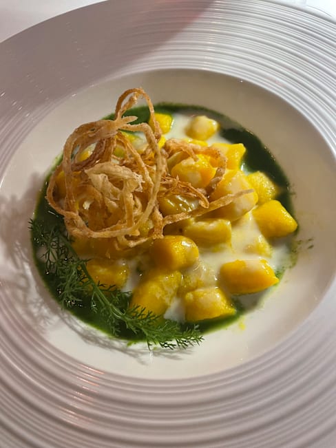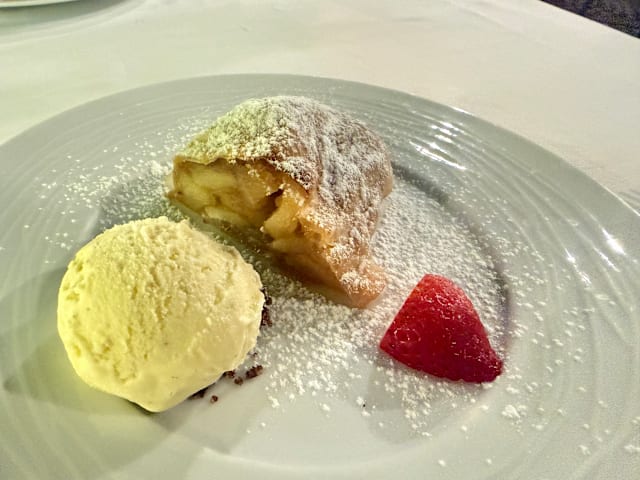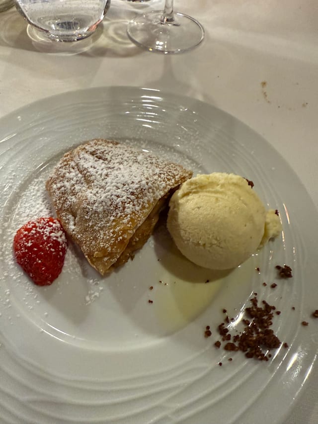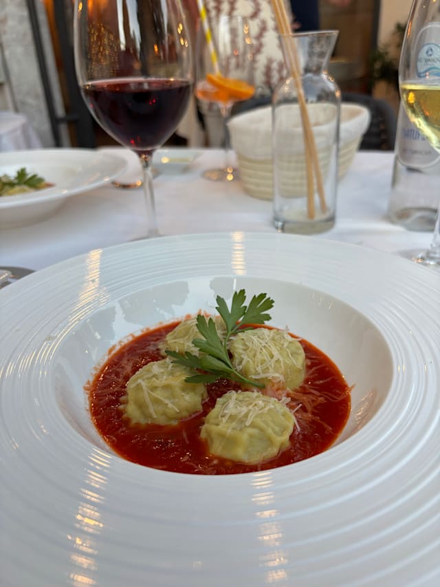 10/10Elegant restaurant with extensive wine menu. We had the fish stew which had delicate broth, delicious. Our pasta was tasty but a bit too Al dente. The apple strudel was spot on (the chef is Austrian). They started the meal with a complimentary amous bouche and ended with complimentary limoncello and tastes of gelato. The service was top Notch.