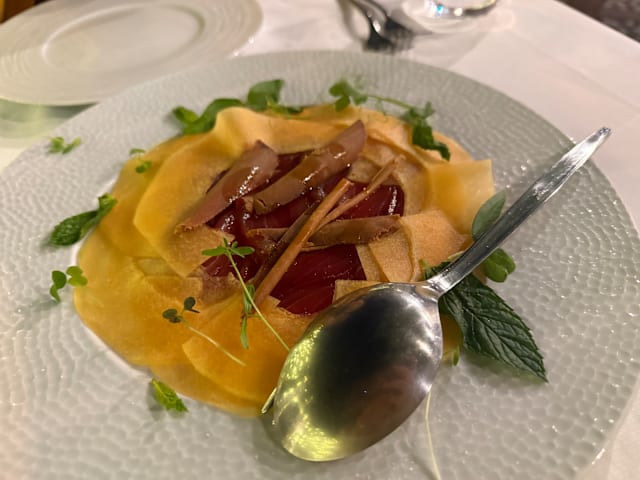 10/10So happy we found Andreas restaurant in Taormina. They were listed in The Fork Top 10 for Taormina. We picked it because of the quiet location which is only a 5 minute walk to the Bam Bar. We enjoyed everything they served. Starting with an Aperol Spritz, we quickly moved into the delicious gnocchi, burrata dish for an appetizer. Now we want to try more pasta so we chose the veal and pork cappelletti. The sauce was deep pomodoro and again delicious. We finished by sharing a beef fillet and the sea bass. Service was great. Bread was house made fresh. Extensive wine list. They brought is a sample of the bruschetta which was nice. They also brought us free shots of limoncello with a biscuit to cap it all off. Great menu, food, ambiance and service. Go early to get your choice of a table outside.