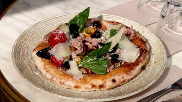 - Thon, mozzarella di bufala, tomate, roquette, huile d'olive