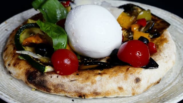 - Sauce pesto, stracciatella, huile d'olive, basilic