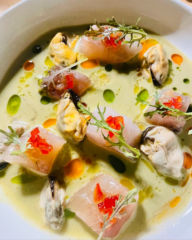 9.5/10+2Great dishes: little paintings on a plate and amazing tastes. Very nice and relaxed atmosphere. Absolute must eat for true fish lovers.