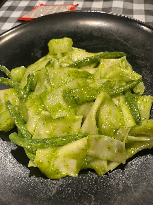 - Mandilli alla genovese alla vecchia maniera con basilico di pra’, patate e fagiolini