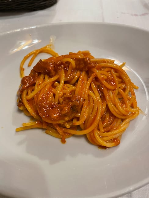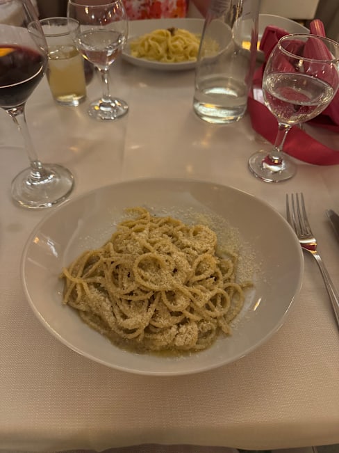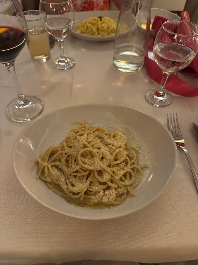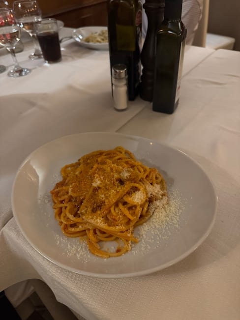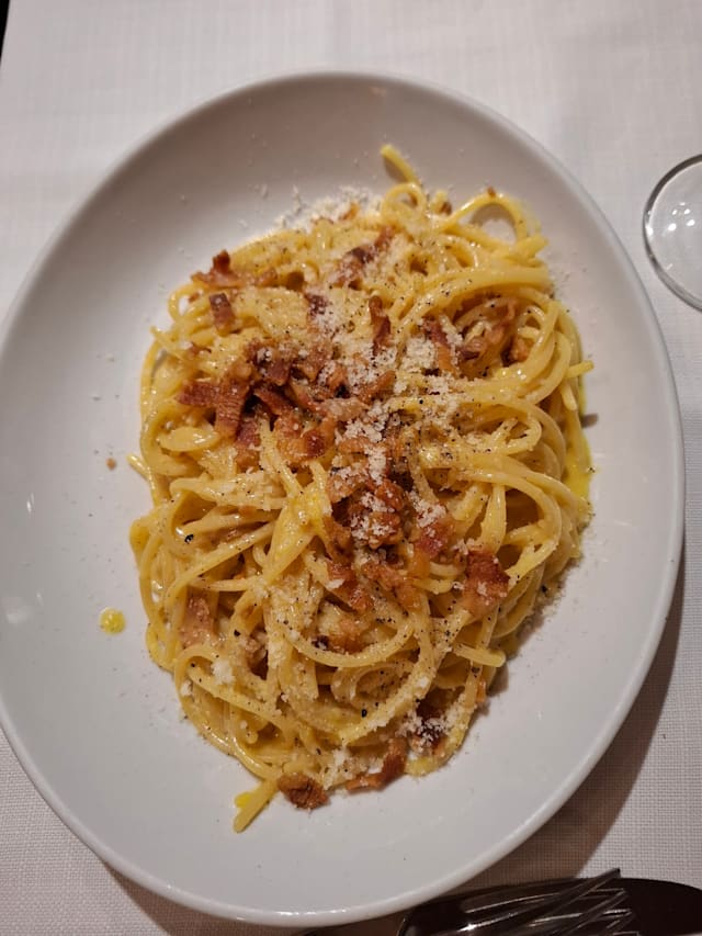 4/10Food was disappointing - spaghetti carbonara was flavorless, the spaghetti were overcooked, and there were no traces of guanciale in the dish. The other pasta - fettuccine with guanciale and artichoke was also bad, with overcooked pasta, no guanciale, and a very heavy, overwhelming taste of canned artichoke. The service was cold and spotty. I am not sure why other reviewers were impressed, our experience was disappointing.