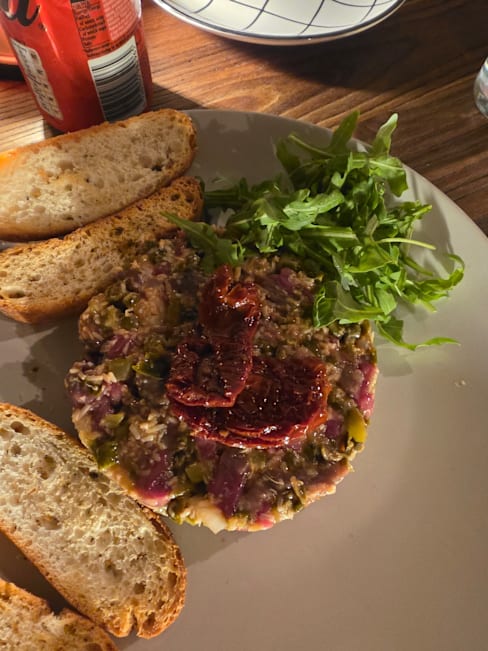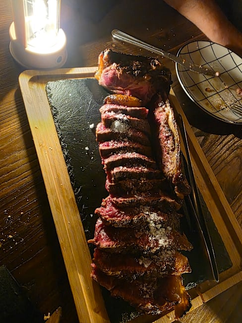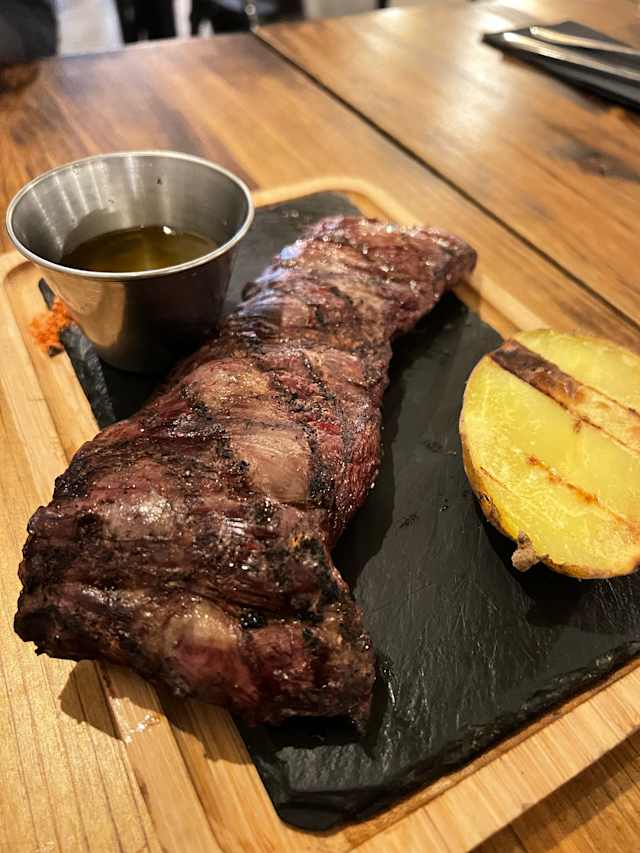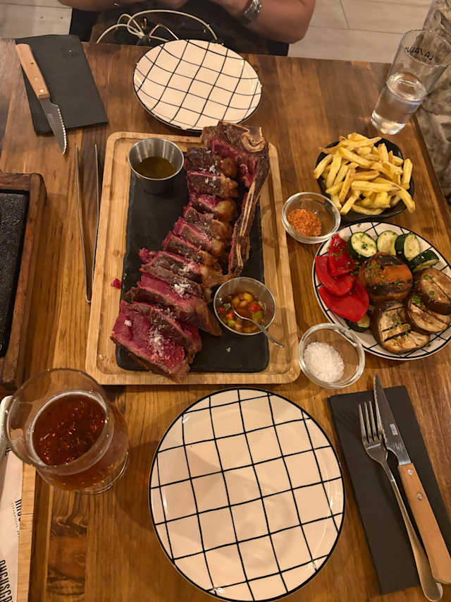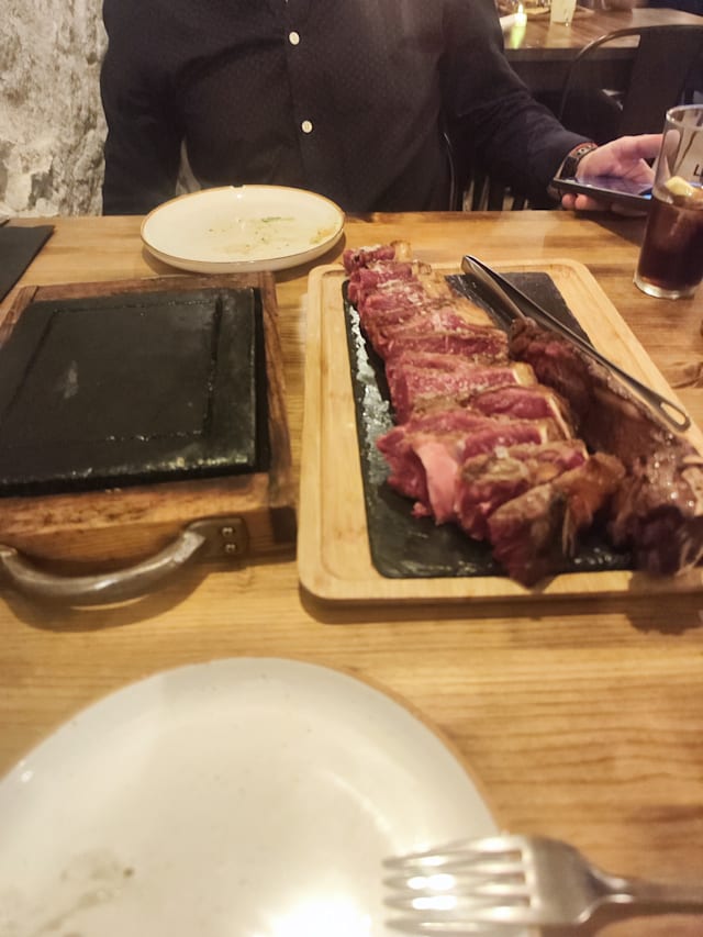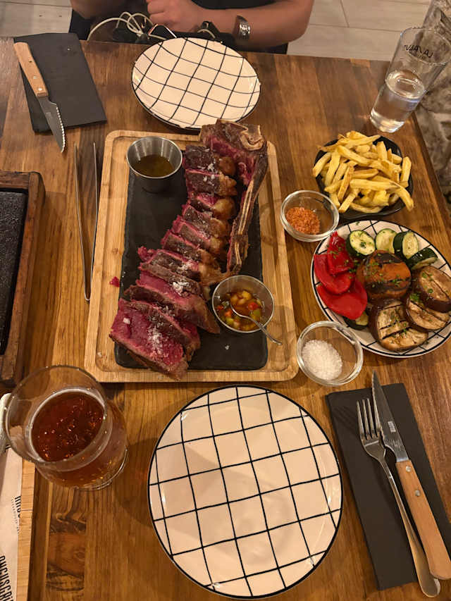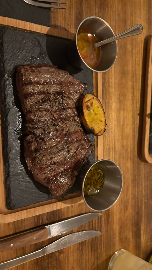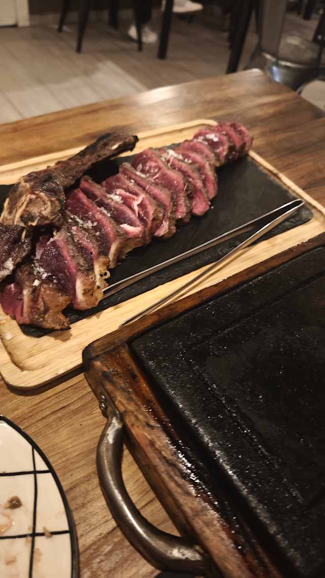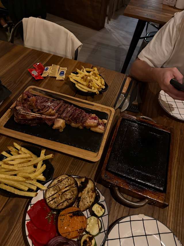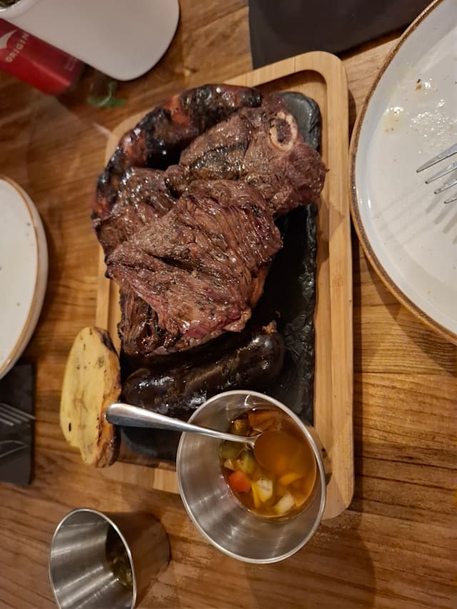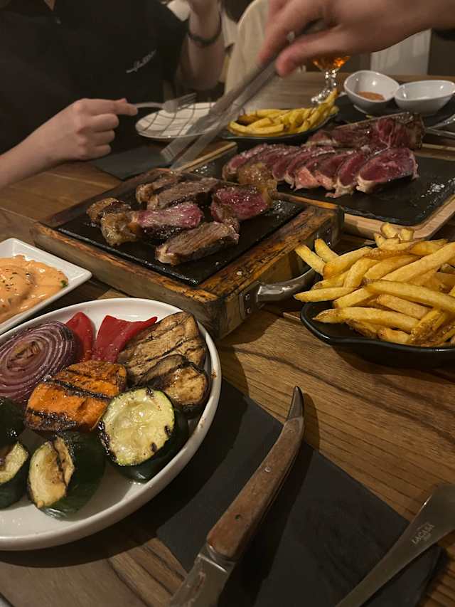 6.5/10I went on a dinner with my wife. We had beef carpaccio and steak tartare as starters, then went for a mixed meat platter for 2. Starters were okay-ish, although a bit chewy, which shouldn’t be the case, especially with carpaccio. Then the mixed meat platter came too soon, before they could even take away our starters’ plates. The meat on the platter was very tough and overcooked mostly. Actually, the two best things on the platter were chicken and sausage, which ironically were two cheapest meats there 😅. They also forgot to bring us potatoes and bread until the very end of the meal, but didn’t hesitate to charge them on the bill… Overall we weren’t satisfied, and I think there are much better steakhouses in Barcelona than this one.