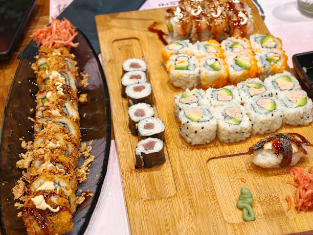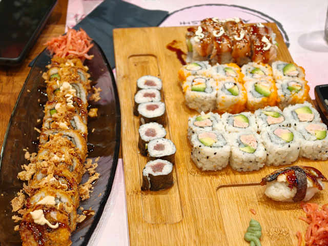 - 8pcs california rolls poulet pane/ avocat - 8pcs california rolls thon cuit/ avocat - 8pcs spring rolls crevette/ avocat