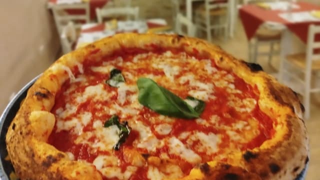 Succo di datterino giallo,salame piccante paesano,fior di latte,olio evo, basilico.