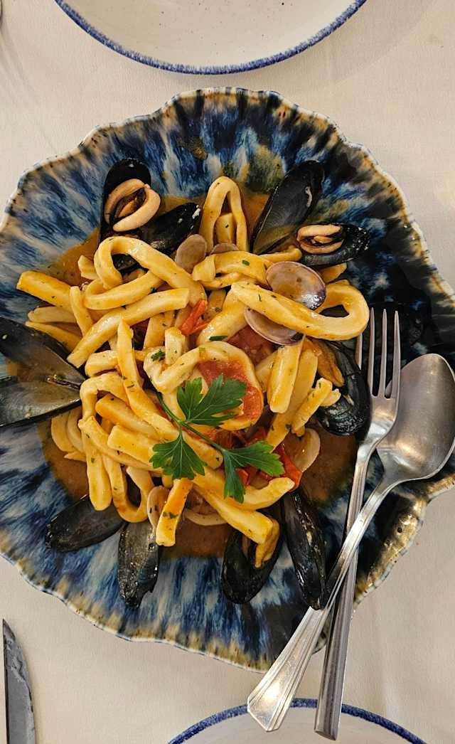- “scialatielli” (handmade local pasta) with clams, mussels and mixed crustaceans