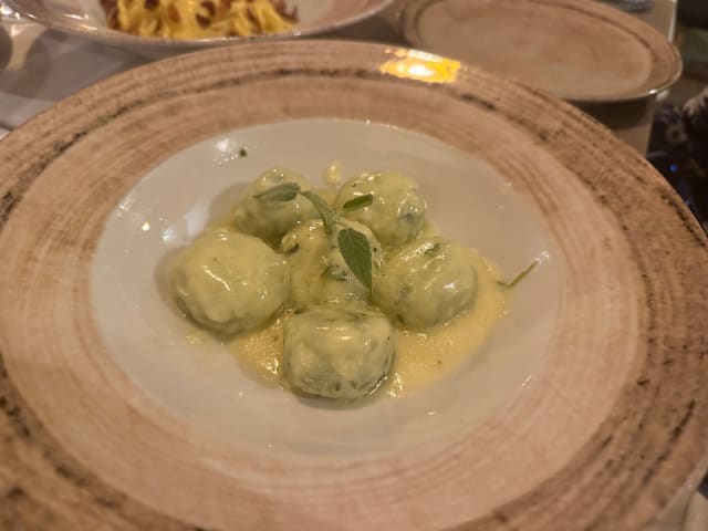 9.5/10Cute small restaurant. Nice variety of dishes on antipasti, primi and secondi. Seafood appetizer was nearly a full meal like cioppino. We had ordered 3 appetizers between the two of us and waiter suggested two were plenty along with our two pasta dishes. He was certainly right! They were making hand made pastas in the front window as we came in. Light bright and cheery atmosphere and we will certainly be back. Located on Via Guella between Via Cavour and Via de’ Ginori between Accademia and Duomo.