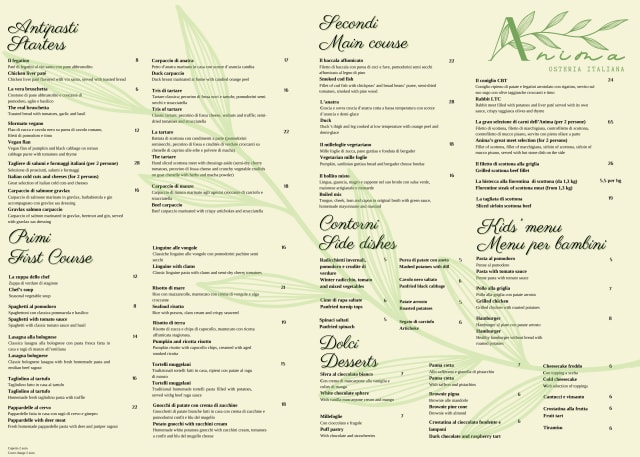 10/10We had a wonderful lunch at Anima Osteria Italiana. Super friendly staff with excellent English, great choice of drinks and superb fresh pasta.d The culurgiones were a highlight. Highly recommended.
