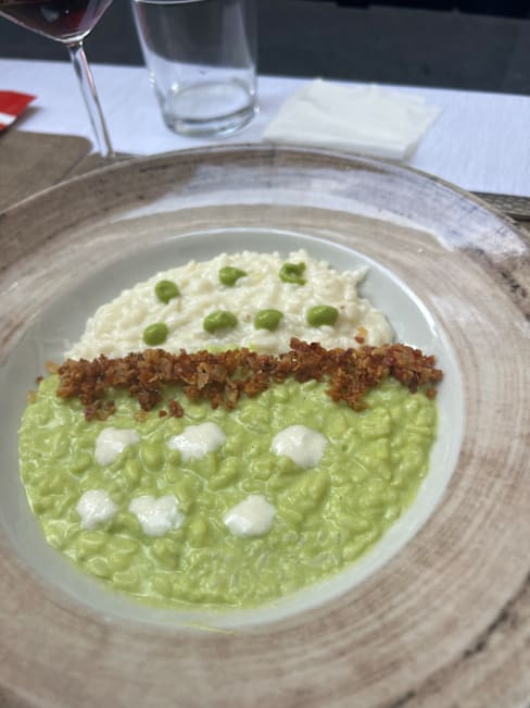 9.5/10Nice lunch sitting outside. Excellent presentation of the risotto (and good risotto as well). Service was attentive.