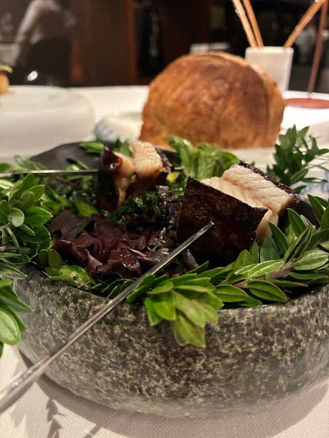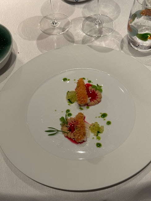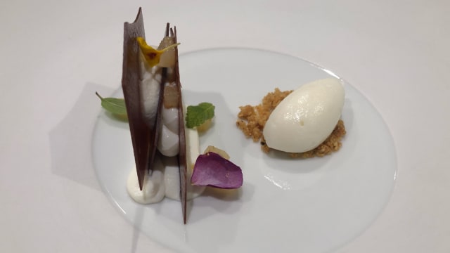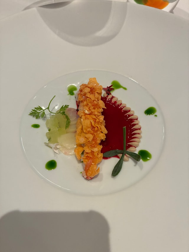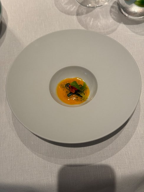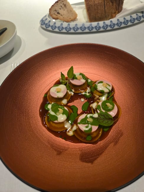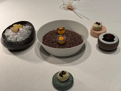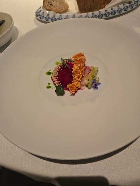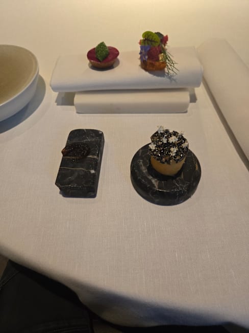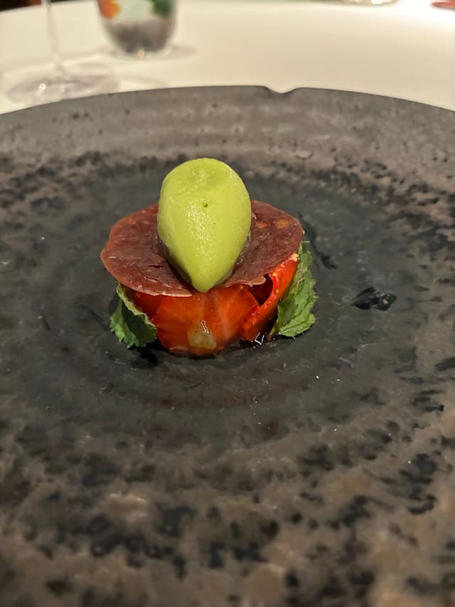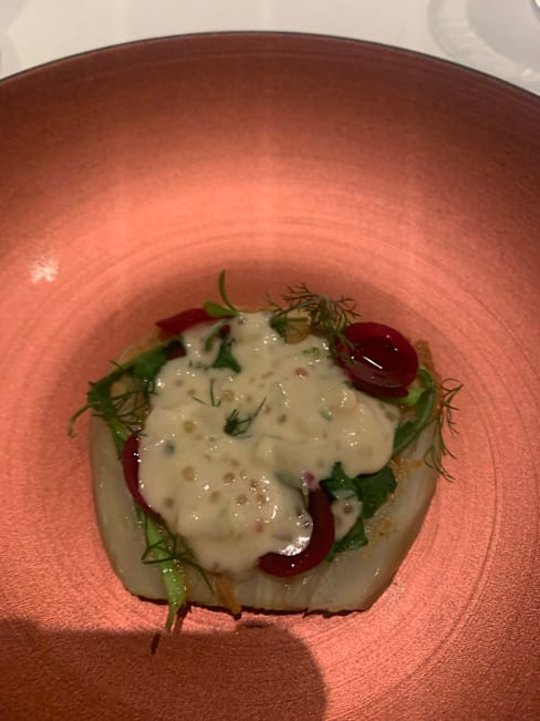 7/10In general, I found the 'intensity' tasting menu to be underwhelming - there weren't any standout courses or dishes. Everything felt like it was trying too hard, and I feel like paring down some of these dishes, and focusing more on highlighting 'star' ingredients, would have resulted in a more memorable meal. The wine pairings were okay, but I felt like they were meant to showcase the wines themselves more than to complement the courses (which is to say that they were good wines in and of themselves, but the pairings seemed uninspired). The pacing also felt a bit rushed. Overall, a fine but forgettable meal.