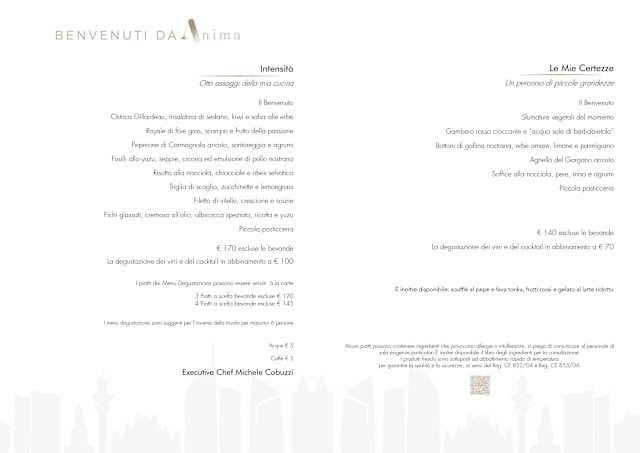 10/10We went to Anima for the food and rightfully so, but what made the night was the staff. Each dish was a work of art, beautifully prepared and served. The taste was no different, the ingredients used and how they paired was a once in a lifetime experience. Additionally, the hard work of James, the sommelier, heightened each dish. The wine selection was some of the best we had ever tasted. It complemented each dish perfectly so that you could experience the height of the flavors. The excellent job of the flexibility of the pairings allowed us to enjoy them all night long. He was incredibly knowledgeable, kind and informative. Along with him, Alessio, the barista, was responsible for the most delicious cocktail pairing we have ever experienced. The artfully crafted drink combined flavors and style to create a prefect paring. Lastly, the service was incredible. Each of the serves were kind, attentive, and knowledgeable. Their understanding and explanation of the food heightened each dish