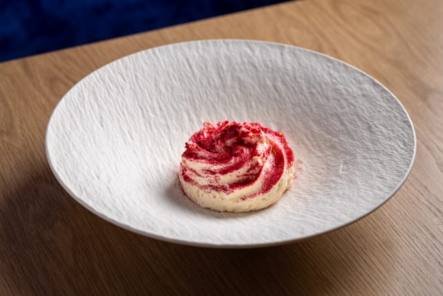 - Triglia in crosta di pane, pomodoro confit e crema di impepata di cozze