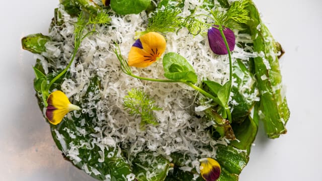 Uovo “Arianna” 65°, tartufo nero, Conciato di San Vittore e bieta