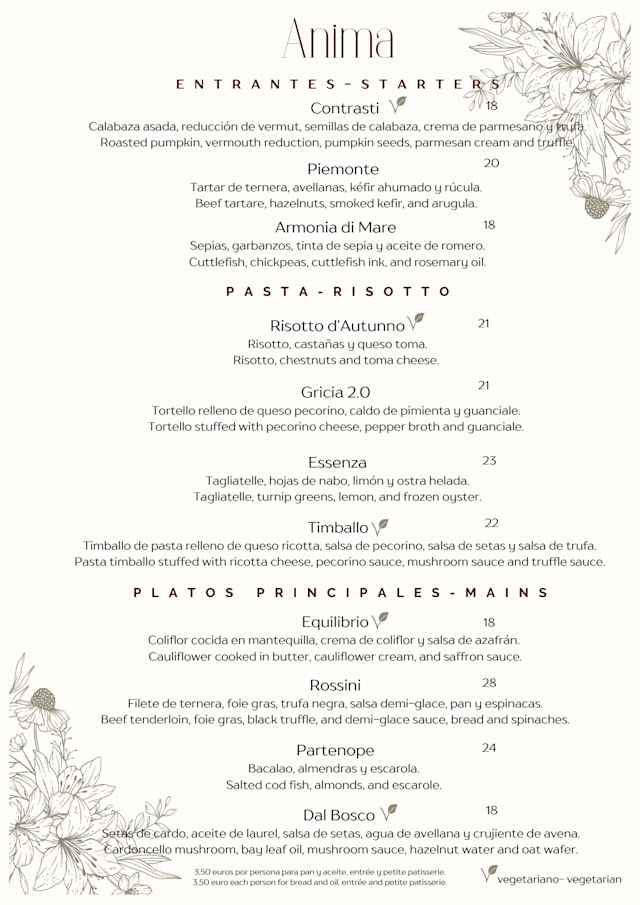 9.5/10Friendly staff, exquisite food, and very good atmosphere. Dining at Anima Ristorante in Alicante was a nice Italian-Mediterranean spot blending tradition and innovation in an intimate, elegant setting that's perfect for romance or family vibes. Soft lighting and welcoming energy make you feel right at home.