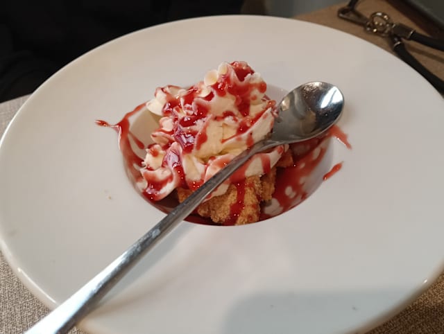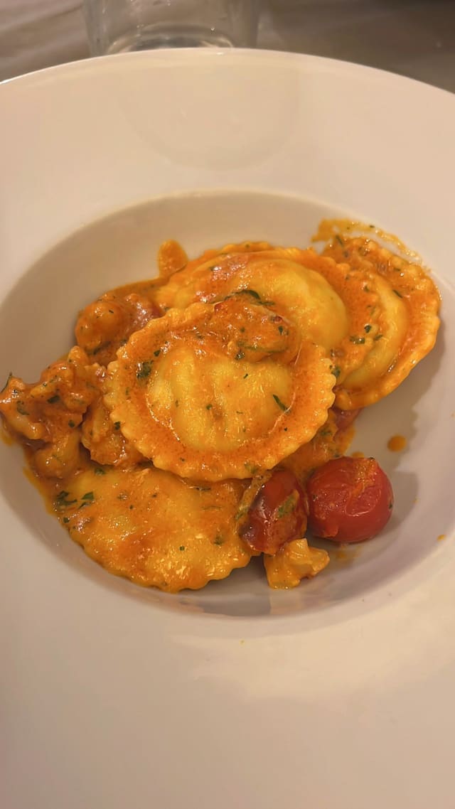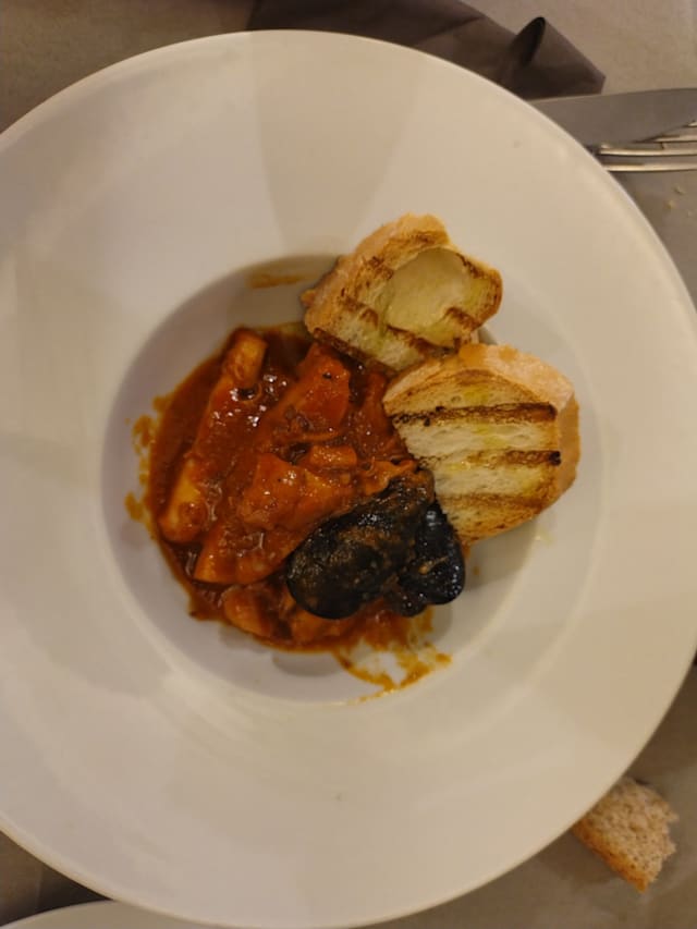 4.5/10So disappointed with this restaurant. The seafood risotto seemed to be boiled rice with 3 mussels and a few small pieces of squid and octopus. No taste, separate grains of rice so not cooked in the traditional way. . Ravioli seemed a bit better and was okay. The second course of duck breast was terrible. A tiny amount (maybe a couple of ounces) of overcooked duck that my knife would not cut. Side of spinach and potatoes were okay. House wine sharp and thin. Just 1 waitress who managed quite well. How did this restaurant get such a good rating for its food?
