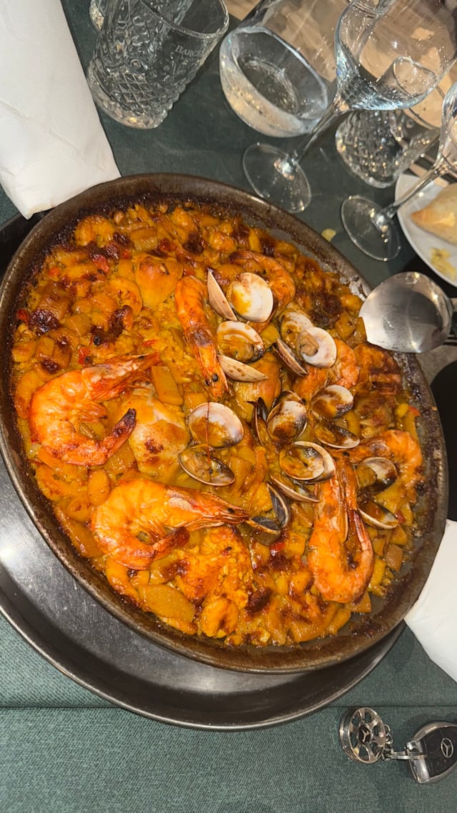 10/10We loved our dinner today! The service was great, the staff was very welcoming and nice. We liked the atmosphere and its music. We ordered paella and we were told in advance that it would be done in 30-35 minutes and we appreciated that they told us in advance. While waiting, they served us a compliment and then bread that was hot from the oven that I absolutely loved! Paella was great, it's my first time trying tho so I'm not an expert haha. Honestly, loved this experience and would not change anything! PS. well, maybe if they served tap water it would be ideal but I don't know if it's normal in Spain or not :)