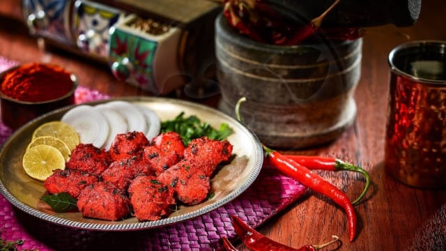 Boneless tender pieces of chicken marinated in chefs handmade masalas, cashew and roasted to taste