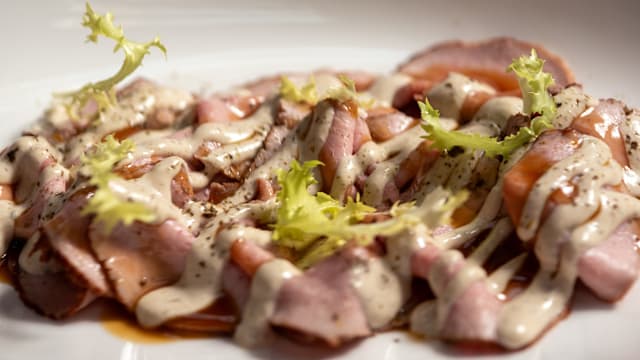Salsa tonnata, fondo di vitello e polvere di capperi