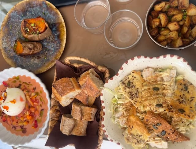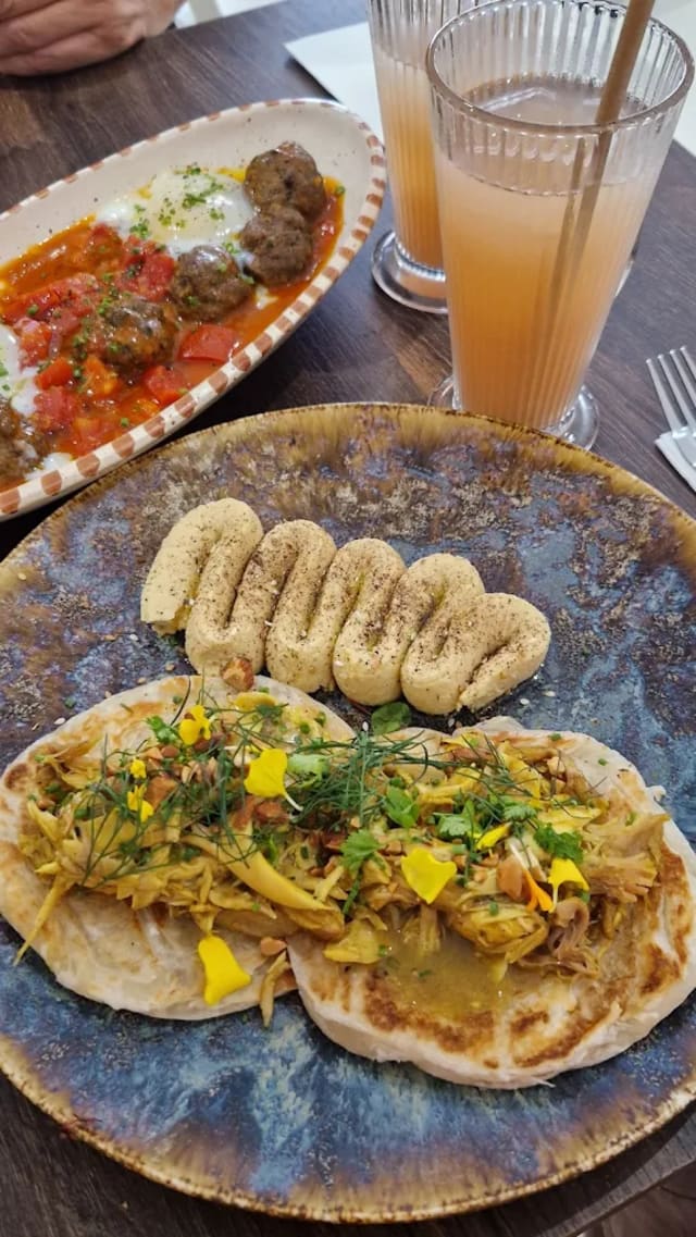 Boulettes de bœur parfumées à la menthe, nichées dans une compotée de tomates, polvrons & épices douces aux saveurs mediterranéennes. Un œuf parfalt bio vient compléter ce plat servi dans une poterle de nabeul, hommage à l'artisanat du goût