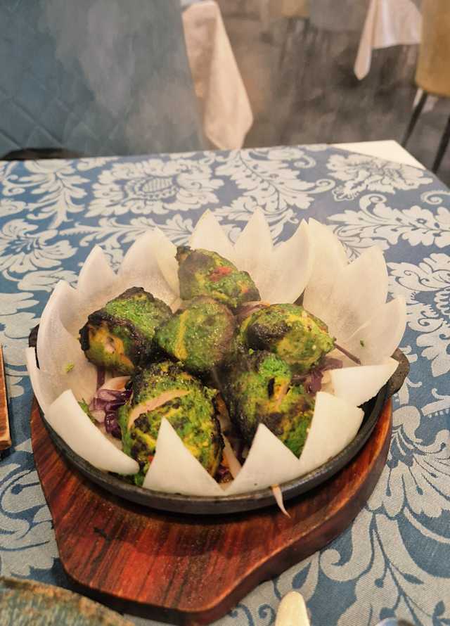 - Cordero marinado ligeramente picante con achar nepali asado en horno tandoori.