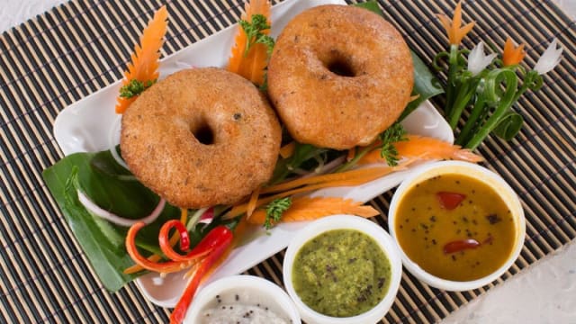Thin crispy rice and lentil crepe served with south indian sambar and a variety of chutneys.