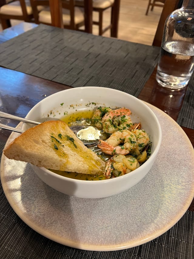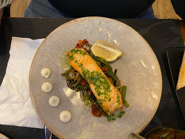 7.5/10Service was fine. Shared garlic prawns starter between two of us which were delicious. My wife had iberian pork which was very good. I had sirloin steak cooked medium which was tasty. It left blood on the plate which indicates it was not properly rested after cooking. The only let down in an otherwise very good meal.