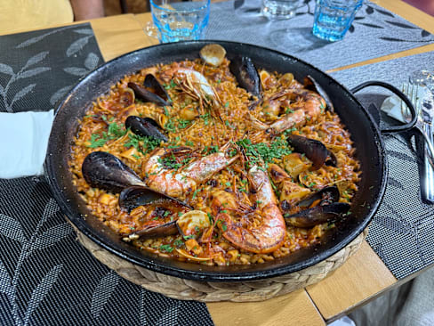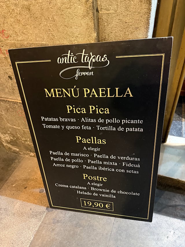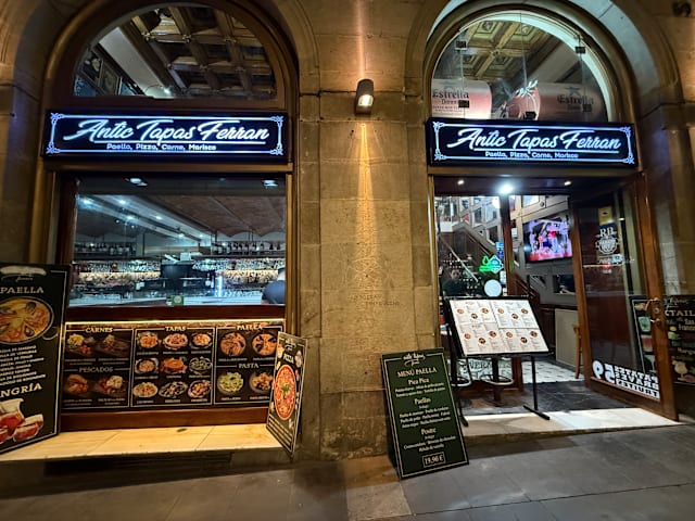 10/10Great tapas, paella and Sangria! Cute little restaurant on a busy street a couple blocks off La Rambla. Would definitely recommend! Loved the seafood paella, the garlic shrimp and the Sangria the most.