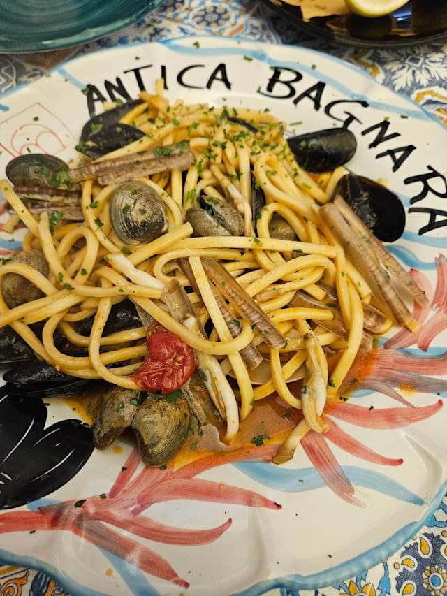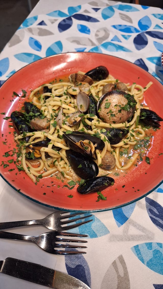 4/10The margarita was good. The pasta was extremely salty. The pasta with seafood contained only mussels. The staff didn’t speak english and it was hard for him to understand us. The toilet was dirty. For sure-never come back.