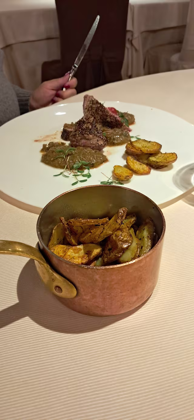 Restaurant with a very good ambiance, amazing service and food. Just a little points to improve - attention to the order (2 glass of wine instead of one) but surely it couldn’t make the experience worse. Seems a bit overpriced. I’d love to come again, thank you!
