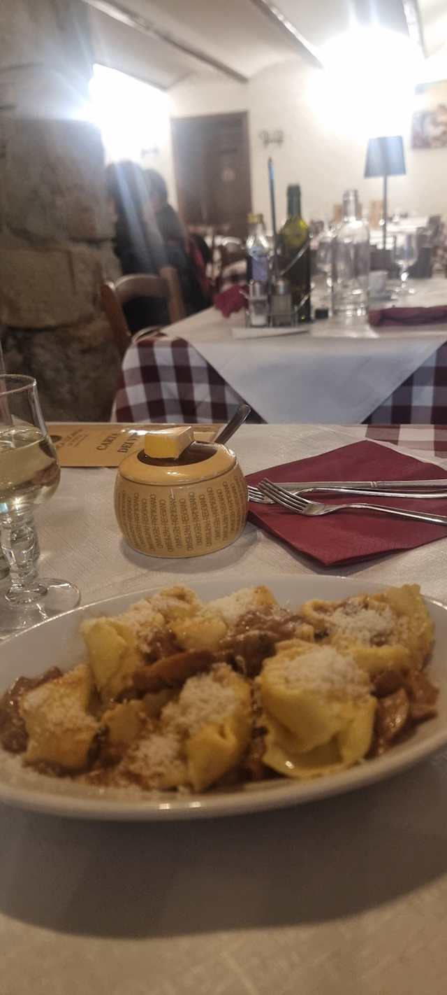 la trattoria si trova in centro al paese , vi sono diversi parcheggi pubblici a disposizione
