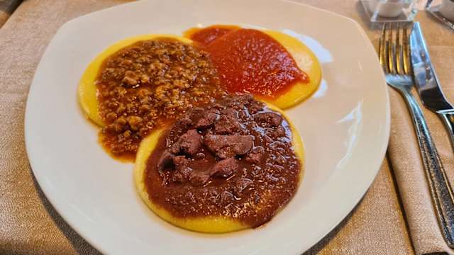 - Grana trentino giovane della val di non. la stanga di dobbiaco. Gorgonzola al cucchiaio con la polenta morbida