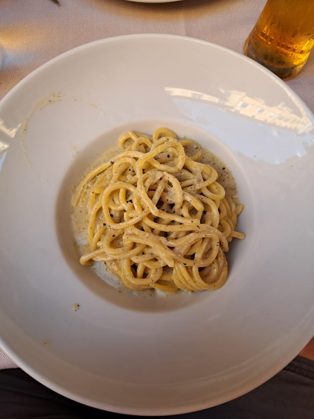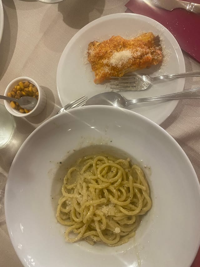 6.5/10Clearly when we mentioned The Fork , we were treated like “dumb Americans “. Ordered fried antipasto ( with cod fish) and received platter with mostly chicken nuggets. Waited for dinner for 40 minutes, while people around us ate before. Caccio e Pepe was plain pasta with an overload of Parmesan, not at all what we know from other places. Then, the check arrived with 20%off instead of 50% and I needed to argue with the manager. She was very nice, and fixed the bill, but it was not a good experience overall.