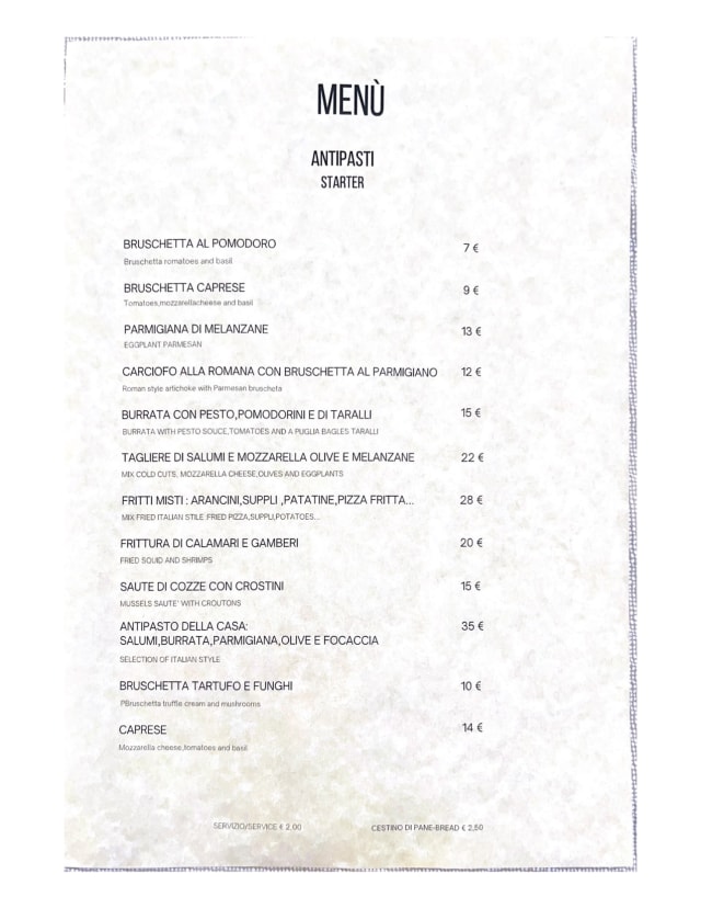 Salve mi dispiace ma lei sta dicendo cose false . 1) il servizio costa 2 euro ( come scritto sullo scontrino che dovrebbe pubblicare , così vediamo se lei e’ un bugiardo . 2) in Italia all’esterno e’ consentito fumare , poteva chiedere ai camerieri di farle cambiare tavoli, perché noi all’esterno del ristorante non possiamo impedire di fumare . 3) se le c’è stato un errore nell’ordinazione purtroppo può capitare io non ero sul posto non posso giudicare ma a volte può succedere quando c’è molta gente , qualche errore nella gestione dell’ordinazione . Per questa Ultima motivazione mi scuso a nome di Ristorante ma si poteva risolvere il problema parlando con un responsabile o al Cameriere 4) i nostri camerieri sono sempre molto cordiali e gentili , probabilmente c’è stato un problema linguistico !!