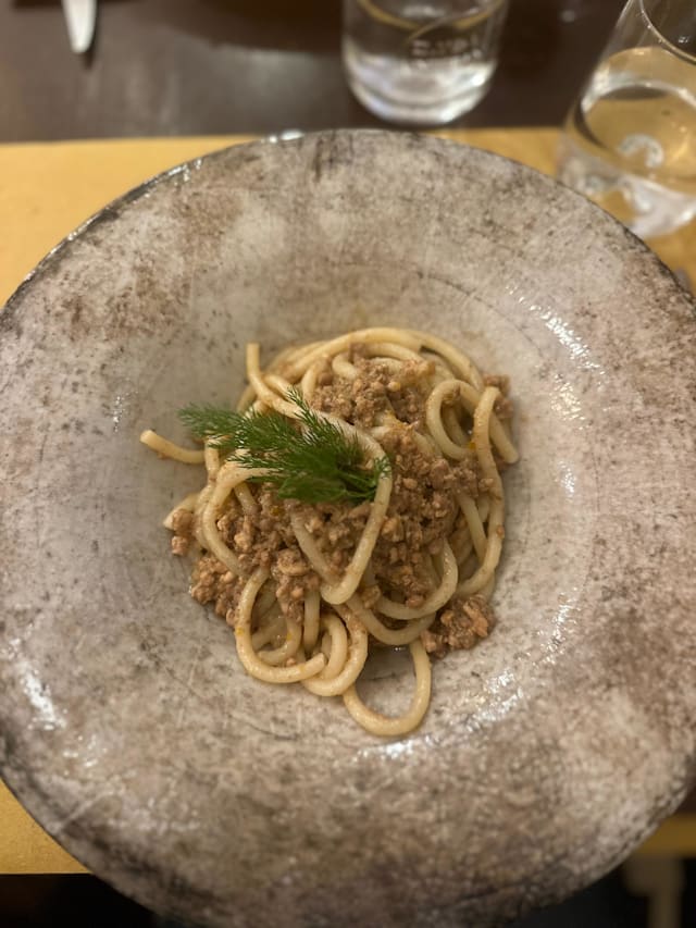 Pici con ragù bianco di cinta senese al finocchietto salvatico