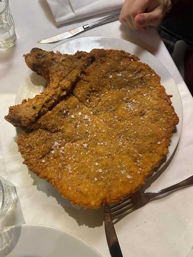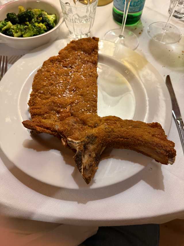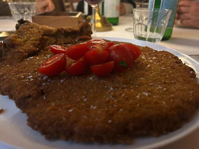10/10Remote place, far from the touristic locations but easy to reach by tramway or taxi with great Italian cuisine. We came for the Milanese cotoletta, thin & legendary; the place is famous for a crispy, Huge orecchia d’elefante di vitello, fried in clarified butter; true old-farmhouse vibe