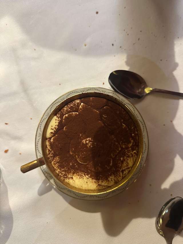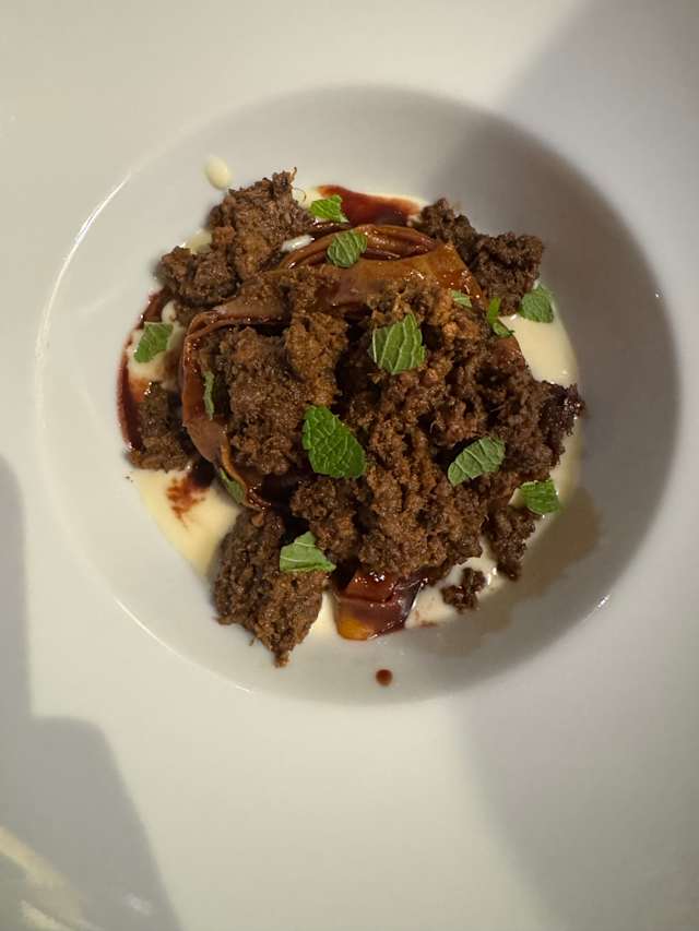 7.5/10Beautiful! Date night material. I ordered a starter and a 1st. First they brought homemade bread and then a little surprise that was so tasty. It was a little round warm bread with red cabbage and I don’t know what, but it was good. I had ordered the meatballs with tartare sauce as a starter. Very boring! Don’t order it. My 1st was the Cannoncini with black garlic and black truffle stuffed with rabbit in porchetta. Delish! I tried to order chocolate cake but it turned out to be chocolate mousse. Oh well, no chocolate cake for me.