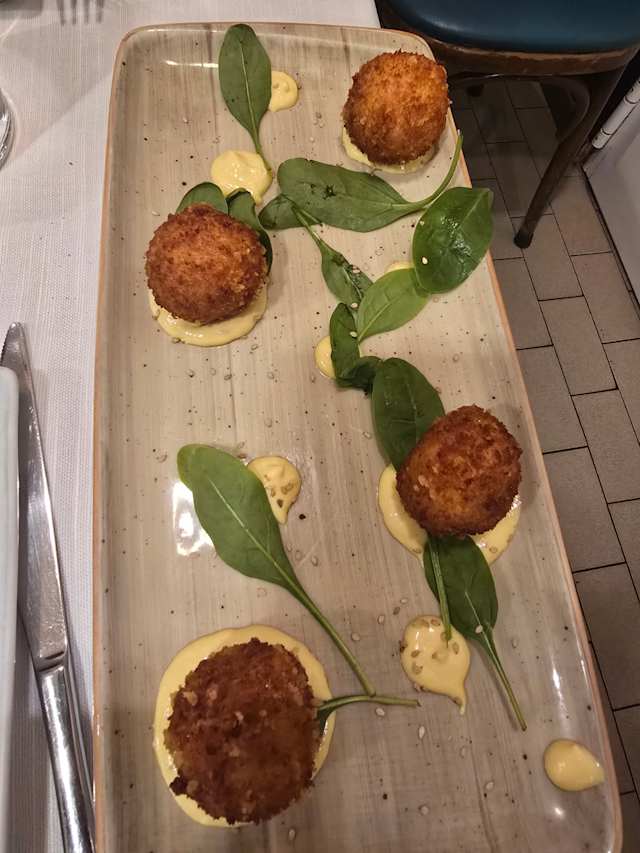 - Mortadella, patate, maionese allo zenzero, panko, spinacino croccante, semi di sesamo