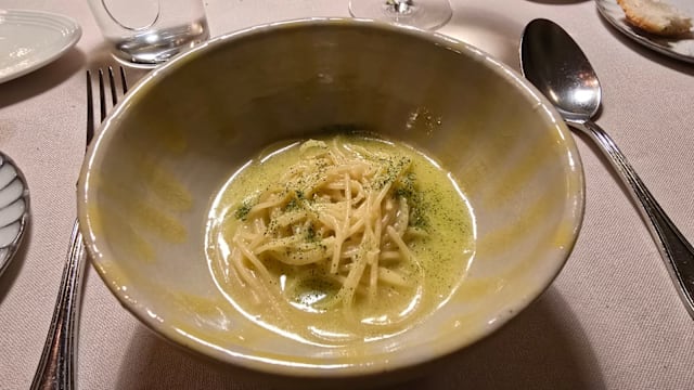 8/10+2There were several issues that are unsuitable for a Michelin-starred restaurant. We ordered vegetarian meals but received a meatball as an appetizer... Later, we were served a vegetable dish that was unreasonably salty. There were two pasta dishes in the meal; the first, with lemon sauce, was excellent, but the second, with potatoes, was bland and not tasty. Although these were meals supposedly based on vegetables, there were very few vegetables in the meal. Apart from an interesting appetizer and the particularly tasty lemon pasta dish, the rest of the dishes were mediocre. We expected more.