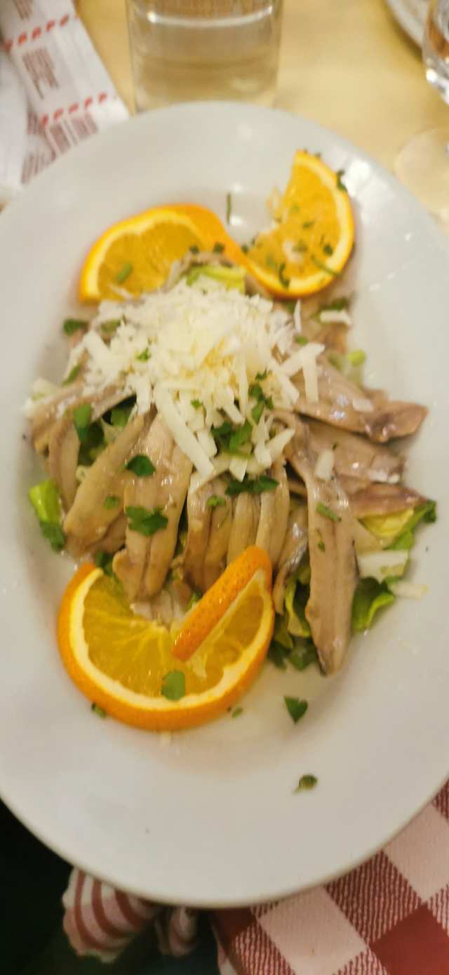 - Filetti di alici marinati agli agrumi serviti con scaglie di pecorino romano