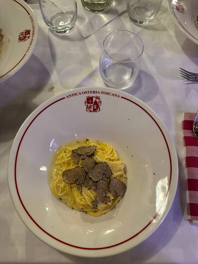 - Tagliere di salumi toscani con prosciutto, salame, sbriciolona, soppressata lardo, salame al tartufo e crostino nero