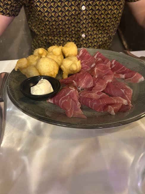 8/10Booked as a treat as it is expensive. Maybe should have researched how Tuscan steak is cooked. Ordered a £100 piece of rib eye and requested medium, was informed it would be pink (lovely)....it was pretty much raw/blue. Risotto for £30 was underwhelming and the tiramisu was just cream and mascarpone, no coffee/liquor flavour.