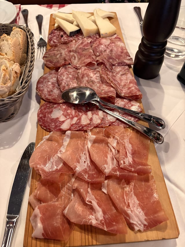 10/10A beautiful restaurant with an old-fashioned ambience. The restaurant is divided up into a number of rooms, which greatly adds to the cosy feeling you get. The service was top-class - the waiting staff, attentive but not overbearing. They are also very knowledgable and helped us with the amazing amount of choice on the menu. A busy spot that welcomed everyone, families, couples, and even dogs (the people of Montecatini Terme really love their dogs). The food was top-notch and cooked to perfection. I had a generous fillet steak with a generous helping of peppercorn sauce. My husband had the biggest rib-eye he's ever seen! Both were cooked to perfection. Sides consisted of slivers of roasted potatoes, grilled vegetables (we were delighted to see a variety of vegetables on the plate - not too easy to get vegetables in restaurants we have found) and tempura onion rings, aubergines and courgettes! Delicious! We finished up with apple tart for himself and Tiramisu for me (beautifully rich and creamy). We didn't take wine - we just stayed with the sparkling water. It is pricier than other places but well worth a visit and you won't go home hungry!