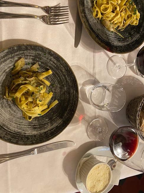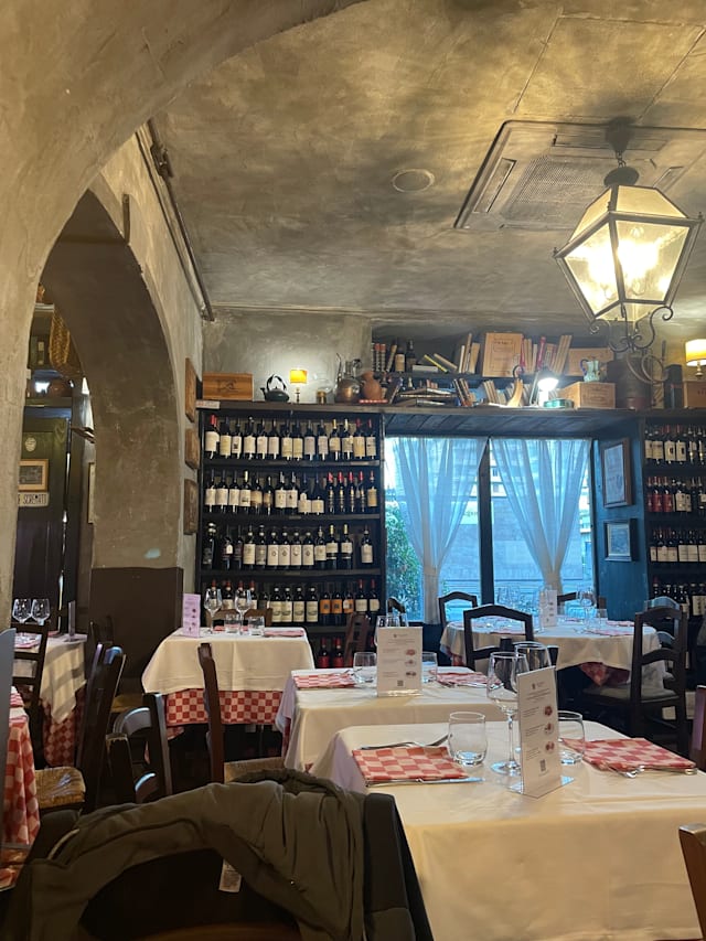 6/10When we first arrived, the restaurant looked charming and authentic—exactly the kind of place you’d hope to discover. However, once seated, we noticed quite a bit of dust on the shelves and books right next to our table, which made the setting feel less cared for. The food had potential: the pasta may have been fresh, but the green asparagus was so overcooked it could have passed for soup. The meat, on the other hand, was extremely rare—almost raw—which made it hard to enjoy. Our waiter was friendly, but we were surprised when our plates were taken away while we were still eating. Also, we were shocked to find a glass of wine cost €15, which felt excessive for the overall experience. All in all, while the place has charm and friendly service, there’s definitely room for improvement when it comes to cleanliness, cooking, and value for money.