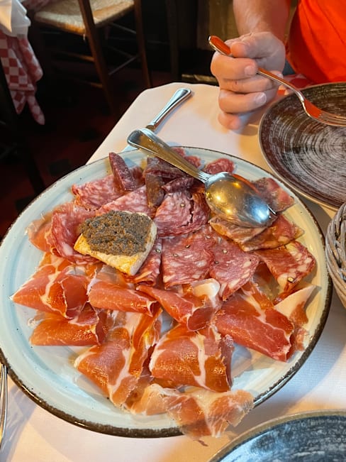10/10Friendly, efficient and competent service - thanks to Adriano who was knowledgeable and could advise me so I ordered the perfect meal. This restaurant offers various traditional Tuscan dishes, but is renowned for it’s grilled steaks. The menu has Tbone steaks (1.5kg on average ) that are usually shared , fillet steak, and a tagliata from the sirloin (400g) ideal for one, however I’m sure they can adapt to the number of guests ordering steak. I took the tagliata. Where it gets intersting is the choice of the breed - ranging from Italian, Angus, Piedmontese, and so forth depending on the amount of marbling you like, flavour, etc. Truly exceptional quality. Started off with sliced raw artichokes with slivers of Parmigiano, dressed with lemon juice and an excellent olive oil. Took their thinly sliced crispy fried potatoes as a side dish. They were good but not outstanding - having said that, I spend a lot of time in Brussels and the Belgians make the best “frites” in the world… Good wine selection, half bottles too.