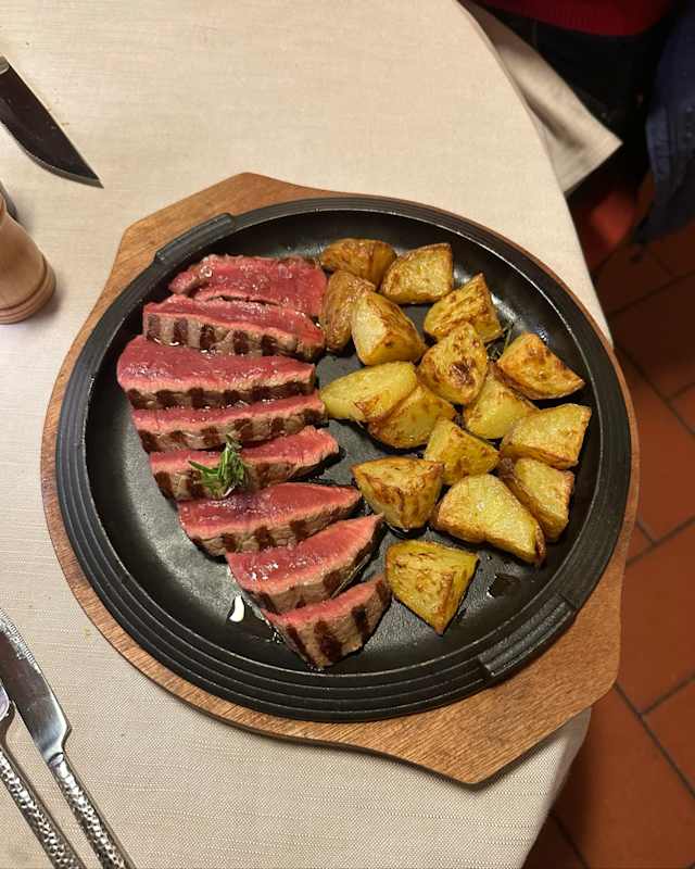 7.5/10The location is perfect and I had been excited to try the restaurant, I had a 50 euro Fork discount so it was the perfect time to try. The starter was fresh, but when our main courses came the plates were half warm like they had come from the microwave. I had Cotoletta and every other table had been given a golden brown lovely looking plate, mine was almost burnt and definitely fried twice if not more. The sweet potato was definitely microwaved and not how described. My partner chose a pasta dish and half the dish was hot and half cold. I have the feeling they prepared the meal earlier and as we waited at least twenty plus minutes after finishing the starter it had to be reheated. Like I said the other tables food looked amazing in comparison.