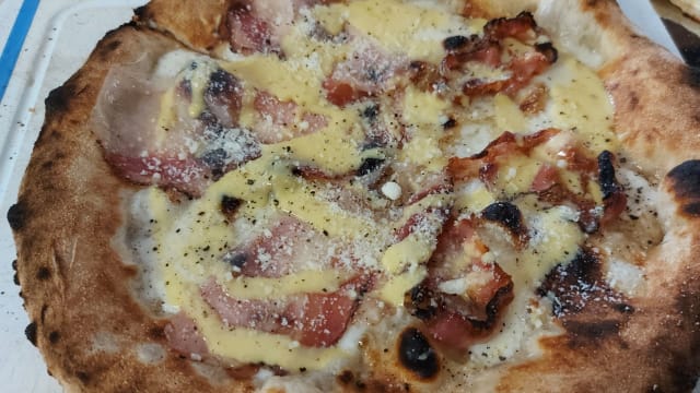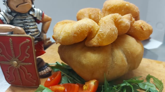 Da una effusione tra una pizza e una puccia, nasce questa nostra gustosa ed esclusiva pizza. Pizza farcita con mozzarella, pomodoro rosso gargano, pomodorini esplosi bbq, pastrami cotto in forno, crumble di olive e un cuore di cacio e pepe.