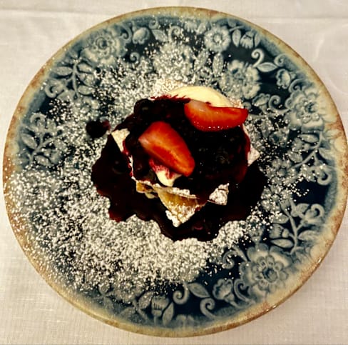 8/10Kind welcome, tortellini in brodo delicious, lamb presented with flair, mascarpone with strawberries a lovely ending to a good meal.