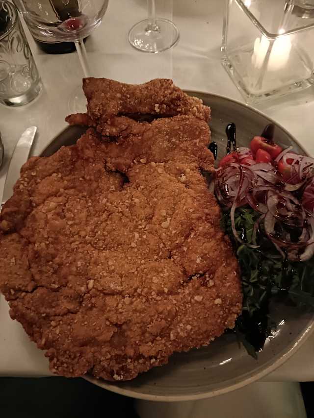 8.5/10Good food (excellent cutlet and risotto) let down by forgotten coffee, forgotten bill request, and second course brought with other two firsts. Friendly service if not the most efficient.