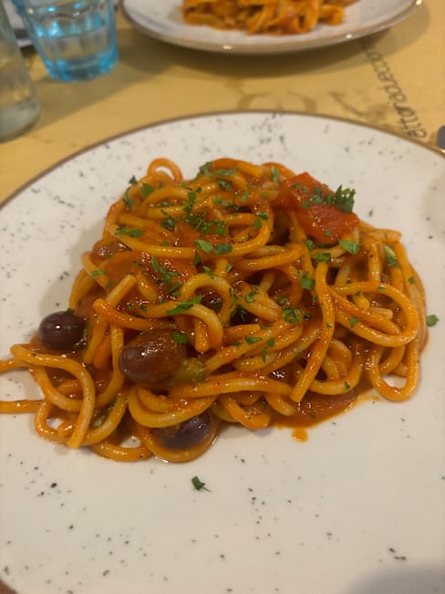 8/10A quick find and truly excellent amatriciana. A stone’s throw from St. Ignatius Church. Lost a star for unpitted olives in the puttanesca. Saved for future.